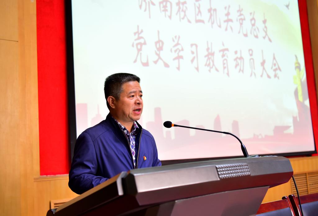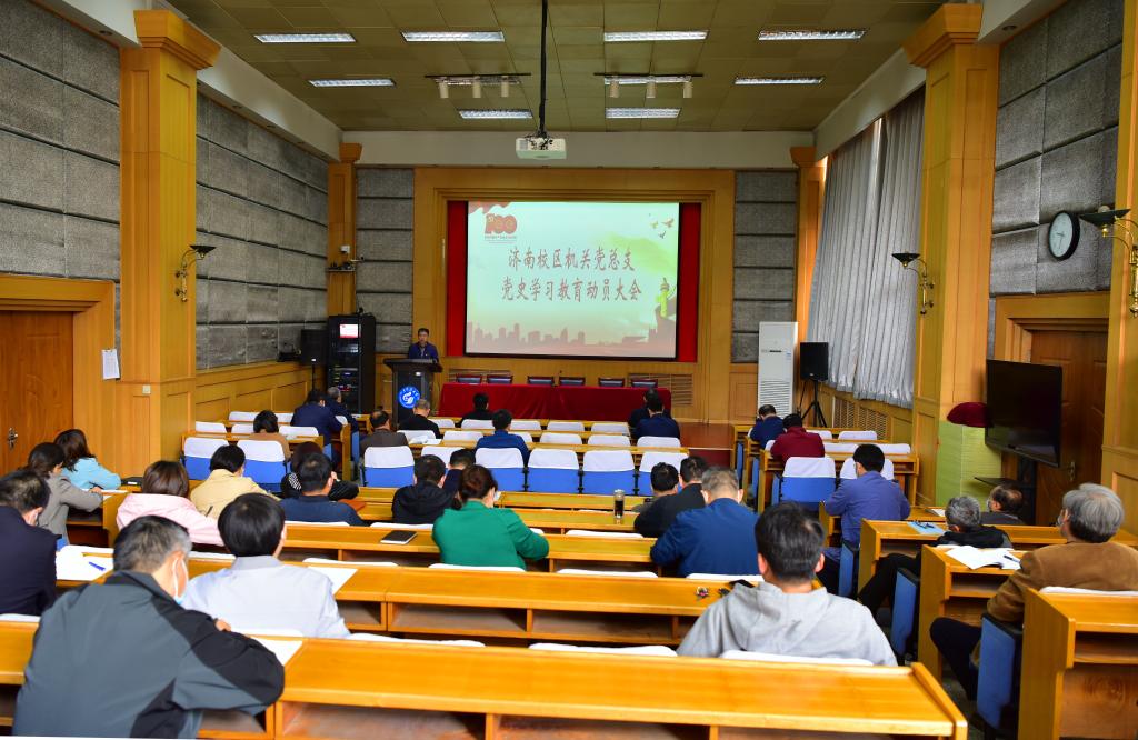 4月9日,機關黨總支在109報告廳組織召開黨史學習教育動員大會,機關全體黨員參加會議。
