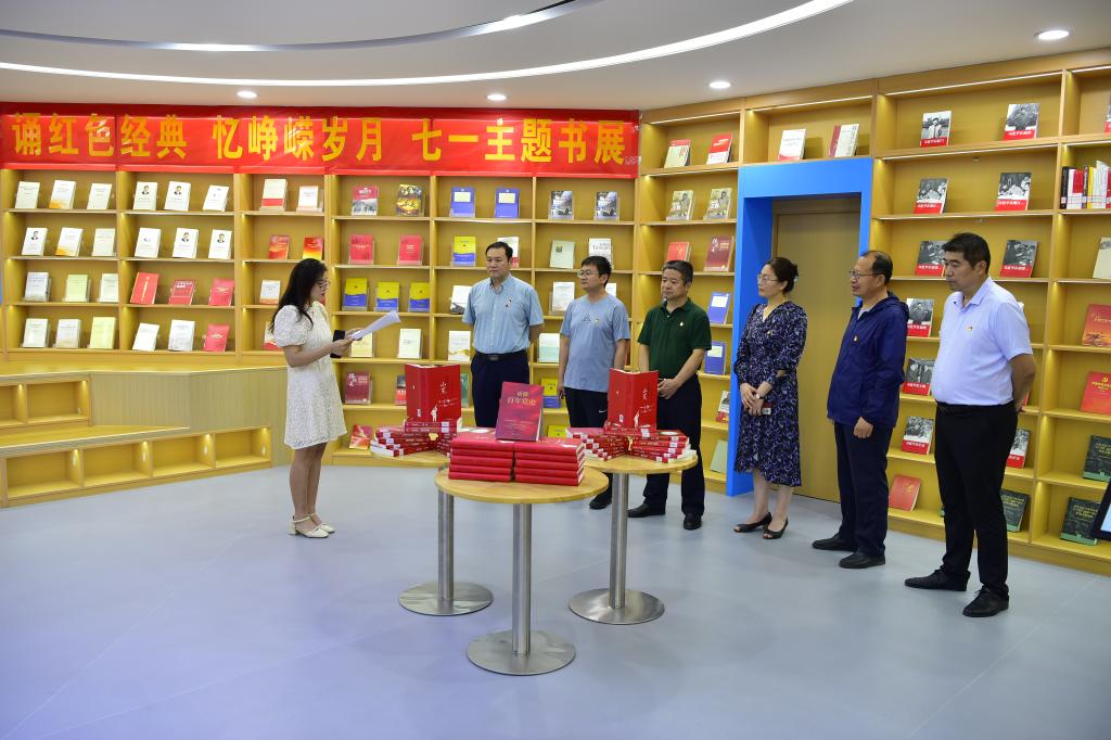 在圖書館紅色教育基地,中心組成員沉浸式閱讀中外文紅色經(jīng)典書目,觀看紅色教育影視資料,感受百年黨史的波瀾壯闊和初心使命的風(fēng)雨如磐。