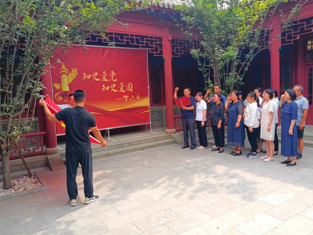 參觀結(jié)束后,全體黨員面對(duì)黨旗,高舉右手莊嚴(yán)宣誓,重溫自己對(duì)黨忠誠(chéng)誓言。