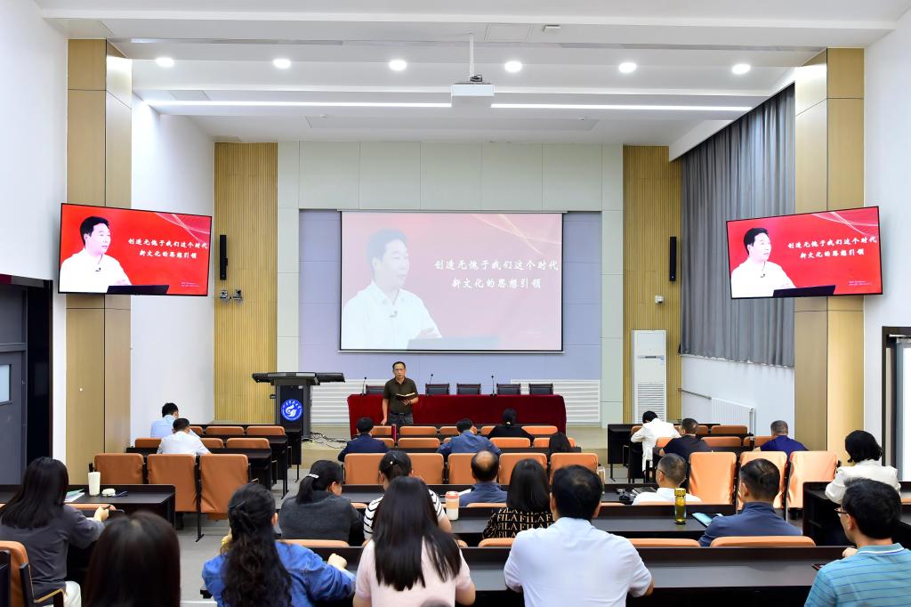 為深入學(xué)習(xí)貫徹習(xí)近平新時(shí)代中國特色社會(huì)主義思想,貫徹落實(shí)黨的二十大精神,9月25日,機(jī)關(guān)黨總支在109報(bào)告廳組織全體教職工集中收看學(xué)習(xí)習(xí)近平文化思想大講堂第一講“創(chuàng)造無愧于我們這個(gè)時(shí)代新文化的思想引領(lǐng)”,機(jī)關(guān)黨總支書記仉興泉主持,全體教職工參加學(xué)習(xí)。