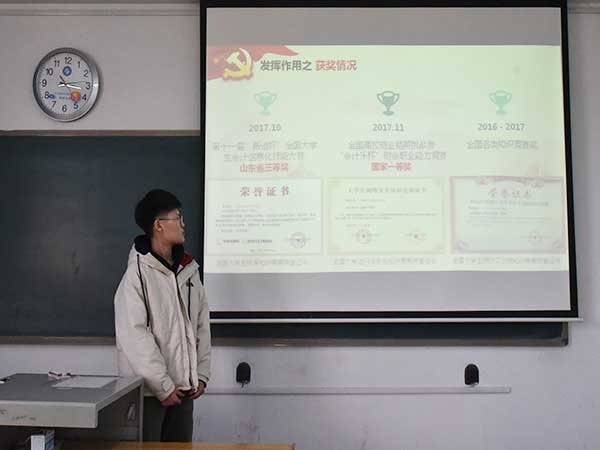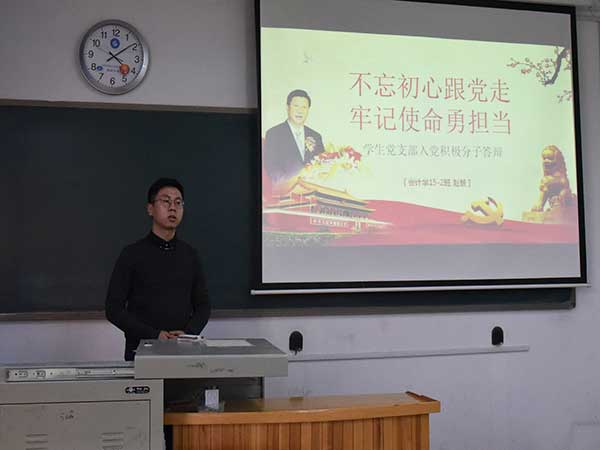為增強(qiáng)和激發(fā)組織活力,有效發(fā)揮基層黨組織的戰(zhàn)斗堡壘作用和支部黨員的先鋒模范作用,引導(dǎo)青年學(xué)生進(jìn)一步增強(qiáng)“四個(gè)意識(shí)”,根據(jù)《中共山東科技大學(xué)委員會(huì)關(guān)于做好發(fā)展黨員工作的意見》(校黨字【2015】59號(hào))要求,結(jié)合支部學(xué)生黨員流動(dòng)性強(qiáng)的特點(diǎn),財(cái)經(jīng)系學(xué)生黨支部制定了《財(cái)經(jīng)系學(xué)生黨支部入黨積極分子過程化培養(yǎng)考察實(shí)施細(xì)則》和《財(cái)經(jīng)系學(xué)生黨支部入黨積極分子過程化培養(yǎng)考察信息匯總表》,將先鋒模范作用發(fā)揮的輻射范圍擴(kuò)大到入黨積極分子。11月21日下午,財(cái)經(jīng)系學(xué)生黨支部于分別在1-502、504、506508教室組織了以“不忘初心跟黨走,牢記使命勇?lián)?dāng)”為主題的入黨積極分子答辯會(huì)。財(cái)經(jīng)系團(tuán)總支書記袁玉磊,財(cái)經(jīng)系學(xué)生黨支部書記齊斯文、宣傳委員王小杰、組織委員張紹琦及財(cái)經(jīng)系全體學(xué)生黨員擔(dān)任評(píng)委,70名入黨積極分子參加本次答辯。