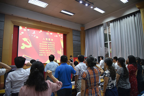 首先,系團(tuán)總支書記袁玉磊領(lǐng)誓,帶領(lǐng)黨員宣讀入黨誓詞。黨員宣誓后,系黨總支書記宋伯濤發(fā)表講話。他說:在中國(guó)共產(chǎn)黨成立96周年之際,今天面對(duì)鮮艷的黨旗,我們莊嚴(yán)地舉起右手,重溫入黨誓詞,向黨宣誓,表達(dá)了我們忠于共產(chǎn)主義事業(yè),為黨奮斗終生的誓言;重溫入黨誓詞,就是重溫當(dāng)年我們的決心和信念,對(duì)比我們今天的認(rèn)識(shí)和行動(dòng);重溫入黨誓詞,會(huì)讓我們回頭看看自己入黨后所走的路,總結(jié)成績(jī),找出不足,抬起頭來向優(yōu)秀的黨員學(xué)習(xí),爭(zhēng)做一名合格的共產(chǎn)黨員;重溫入黨誓詞,會(huì)使我們時(shí)刻牢記黨的目標(biāo)和宗旨,牢記自己入黨時(shí)的承諾,時(shí)刻保持共產(chǎn)黨員的優(yōu)良傳統(tǒng)和本色;重溫入黨誓詞,又讓我們想起入黨時(shí)的激情,想起入黨宣誓時(shí)的莊嚴(yán)承諾,更加增強(qiáng)我們的光榮感、責(zé)任感、使命感。最后,他向全體黨員提出了三點(diǎn)要求:一做合格黨員必須加強(qiáng)自身學(xué)習(xí),提高理論修養(yǎng),堅(jiān)定共產(chǎn)主義信念;二做合格黨員要思想上入黨、言行一致,始終保持先進(jìn)性;三做合格黨員要立足本職工作,拼搏創(chuàng)新,擔(dān)當(dāng)奉獻(xiàn)。