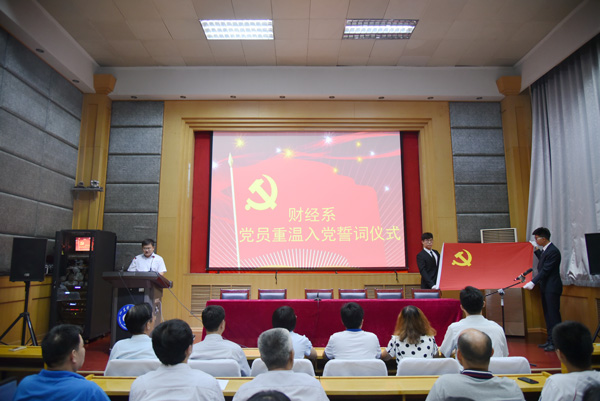 6月29日,財(cái)經(jīng)系在109報(bào)告廳舉行了莊嚴(yán)而隆重的黨員重溫入黨誓詞儀式,財(cái)經(jīng)系黨總支全體教職工黨員、學(xué)生黨員以及部分入黨積極分子代表參加了本次活動(dòng)。會(huì)議由系黨總支副書記胡寶征主持。