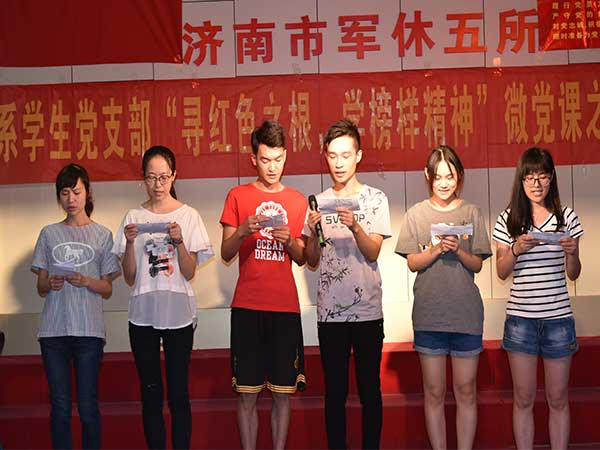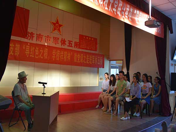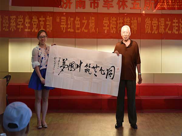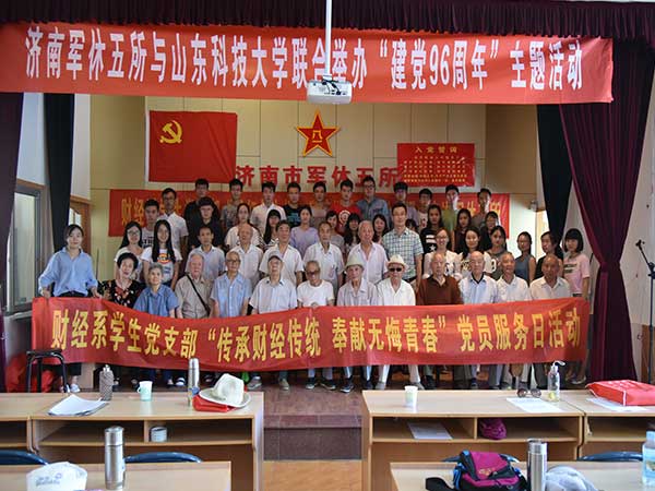 建黨96周年即將來臨之際,財(cái)經(jīng)系學(xué)生黨支部于6月19日上午與濟(jì)南軍休五所聯(lián)合舉辦了慶七一主題黨日活動(dòng)同時(shí)也是“尋根承財(cái)”特色黨建活動(dòng)第一次走出校門。濟(jì)南軍休五所黨總支書記、所長孟廣松、財(cái)經(jīng)系團(tuán)總支書記袁玉磊、財(cái)經(jīng)系學(xué)生黨支部書記齊斯文以及軍休五所的老黨員干部們、財(cái)經(jīng)系學(xué)生支部部分學(xué)生黨員和入黨積極分子參加活動(dòng)。