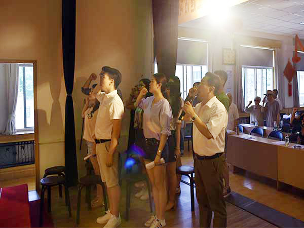 活動(dòng)開始前,軍休五所孟廣松書記講話。他首先對財(cái)經(jīng)系老師及同學(xué)們的到來表示歡迎,希望大家重溫黨的歷史,明確黨員權(quán)利與義務(wù),努力成為一名優(yōu)秀的共產(chǎn)黨員。隨后,齊斯文介紹了財(cái)經(jīng)系學(xué)生黨支部的情況,對軍休五所的領(lǐng)導(dǎo)同志們對此次活動(dòng)的大力支持表示感謝,并對老中青三代黨員共同精心設(shè)計(jì)的黨日活動(dòng)充滿期待。在接下來的活動(dòng)中,老黨員教唱紅歌《中國人民志愿軍戰(zhàn)歌》,同學(xué)們跟著老黨員一同慷慨激昂的合唱,感受著中國人民志愿軍的精神。老黨員王嘉賓同志、馮三鵬同志、朱德鴻同志、趙行如同志,通過結(jié)合自身的學(xué)習(xí)、參軍、入黨、工作等經(jīng)歷,向大家講述了黨的艱難歲月,強(qiáng)調(diào)加入了中國共產(chǎn)黨,就要按黨的章程辦事,跟著黨的規(guī)矩來,并對新時(shí)代的大學(xué)生黨員、入黨積極分子提出了新的要求,希望大家不負(fù)黨和國家的期望,提升自我,對黨忠誠,勤奮學(xué)習(xí),把國家建設(shè)的更美好。隨后,在場全體成員重溫入黨誓詞,面對黨旗,黨員們高舉右拳宣讀入黨誓言,入黨積極分子認(rèn)真聆聽,大家再一次感受到肩上沉甸甸的責(zé)任。最后,同學(xué)們朗誦老黨員原創(chuàng)詩詞,軍休五所隋玉增同志將書法作品《同心共筑中國夢》贈(zèng)與支部,大家在文學(xué)作品中感受老黨員對黨的深厚情感