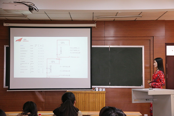 在進(jìn)行了簡單自我介紹后,張慧賢首先分享了自己快速通過ACCA全部14門科目的經(jīng)歷與學(xué)習(xí)上的方法技巧,幫助正在學(xué)習(xí)ACCA的同學(xué)可以更合理地規(guī)劃自己的學(xué)習(xí)計(jì)劃。隨后,張慧賢講述了自己曾獲得多所大學(xué)保研資格并最終選擇中國科學(xué)院的求學(xué)經(jīng)歷。她指出:“即使再優(yōu)秀的人,也會遇到各種各樣的挫折與挑戰(zhàn)?!睆埢圪t以自己的親身經(jīng)歷鼓勵大家要具有不懼困難,勇往直前的精神。此外,她還談及了自己社會實(shí)踐經(jīng)歷,張慧賢曾在天健會計(jì)事務(wù)所實(shí)習(xí),并在上海花旗銀行擔(dān)任投資銀行總經(jīng)理助理,在事務(wù)所參與晨光文具海外并購業(yè)務(wù),豐富的社會實(shí)踐經(jīng)歷使在場的同學(xué)們意識到自己在社會實(shí)踐經(jīng)驗(yàn)上的欠缺。最后,張慧賢希望同學(xué)們盡早明確目標(biāo),多參加一些公司的實(shí)習(xí)和實(shí)踐鍛煉。