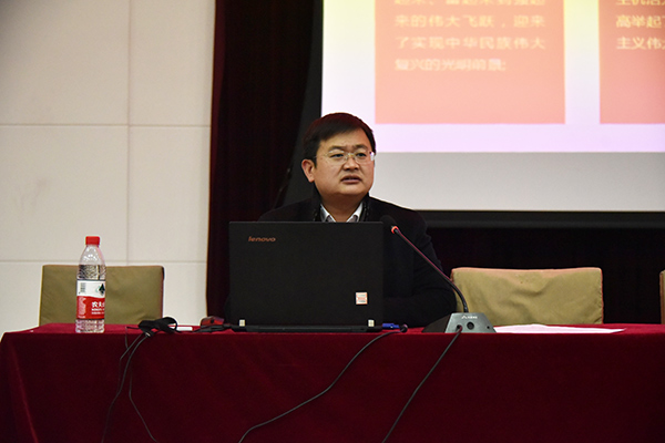 胡寶征從新時代中國特色社會主義思想入手,通過對比黨的八大、十一屆六中全會以及十九大報告中分別對我國社會主要矛盾的判斷,指出社會主要矛盾的轉(zhuǎn)化是進入新時代的基本依據(jù)。他結(jié)合黨的十八大以來黨和國家事業(yè)取得的歷史性成就,闡述了五年來黨和國家事業(yè)發(fā)生的歷史性變革,鼓舞和激勵青年大學(xué)生堅定四個自信,繼續(xù)把黨和國家事業(yè)推向前進。十九大報告中指出,這是一個承前啟后、繼往開來的新時代,是我國日益走近世界舞臺中央、不斷為人類做出貢獻的時代。他勉勵青年大學(xué)生樹立與這個時代主題同心同向的理想信念,勇于擔(dān)當(dāng)時代賦予的歷史責(zé)任,激發(fā)最強勁的奮斗力量,綻放最美的青春光芒。