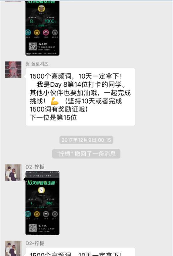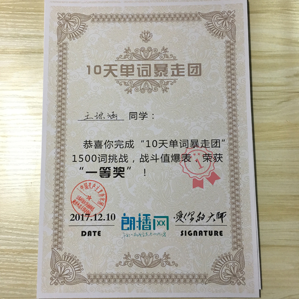 本次活動為線上活動,以微信作為媒介開展,共報(bào)名參加120余人。社團(tuán)根據(jù)朗播英語的要求每天為成員安排相應(yīng)的打卡任務(wù),并于十天內(nèi)安排兩場線上名師授課——教會大家如何正確背單詞。十天內(nèi)每天都有負(fù)責(zé)人以各種形式監(jiān)督和鼓勵(lì)大家打卡,并負(fù)責(zé)匯總?cè)簝?nèi)成員的問題匯報(bào)給總部。同學(xué)們十分積極的參與,并持之以恒地賦予行動,效果立竿見影,最后共有15名同學(xué)完成挑戰(zhàn),獲得郎播英語的實(shí)踐證書。
