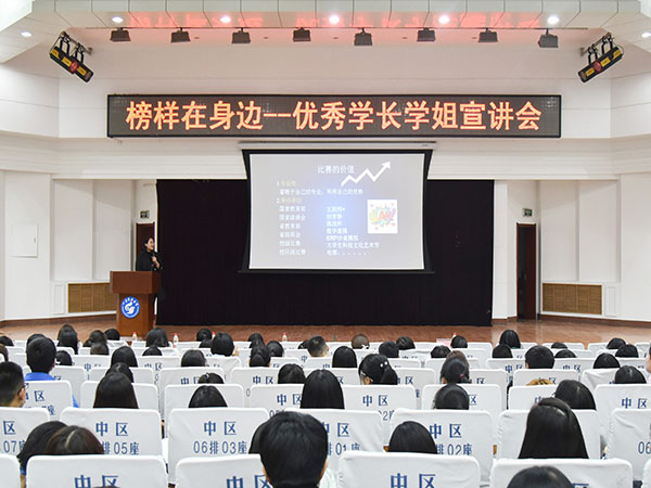 為幫助新生更好的完成未來的規(guī)劃,全面的了解大學的學習與生活,10月29日晚,由財經(jīng)系學生會學習科技部主辦的“榜樣在身邊”——優(yōu)秀學長宣講會在圖書館報告廳順利舉行,七位優(yōu)秀學長學姐受邀進行宣講,財經(jīng)系2017級全體同學參加了本次活動。
