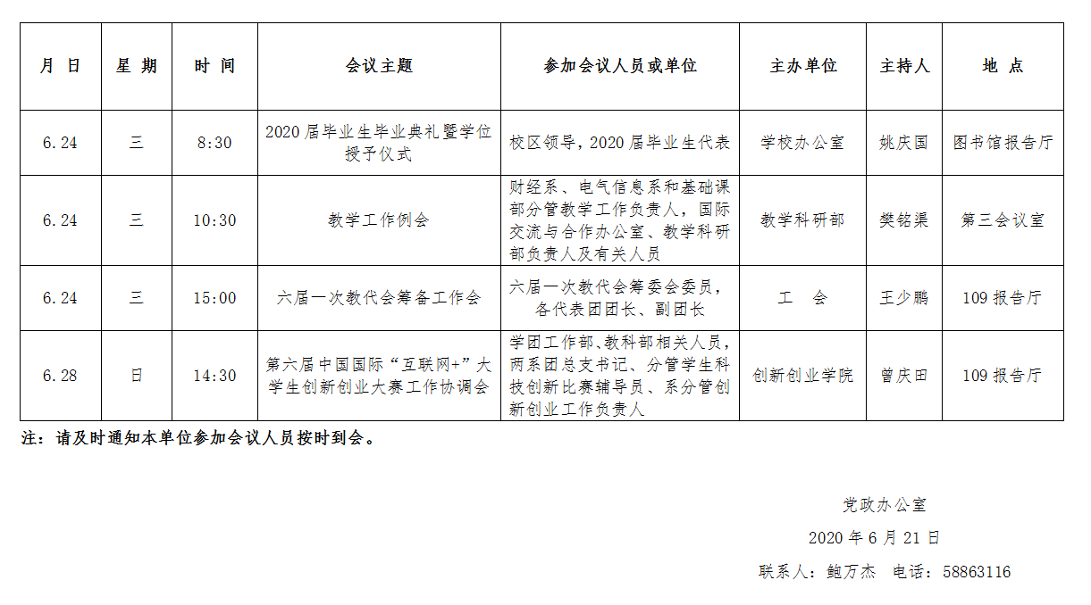 濟南校區(qū)第十九周會議安排