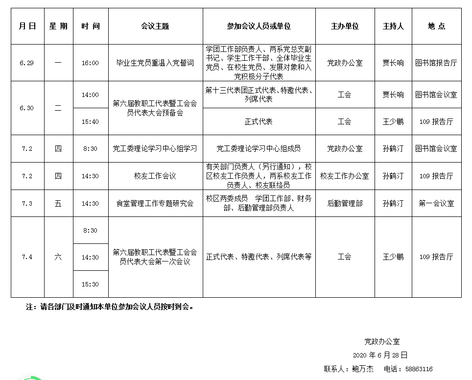 濟(jì)南校區(qū)第二十一周會(huì)議安排