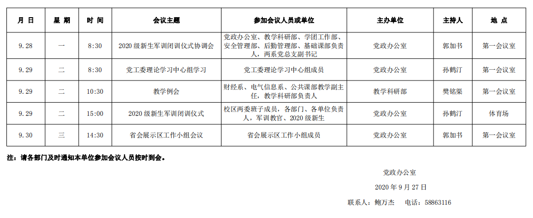 濟(jì)南校區(qū)第五周會議安排