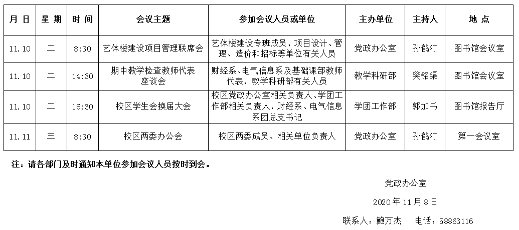 濟(jì)南校區(qū)第十一周會(huì)議安排