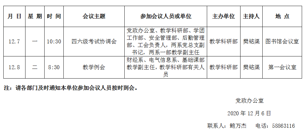 濟(jì)南校區(qū)第十五周會(huì)議安排