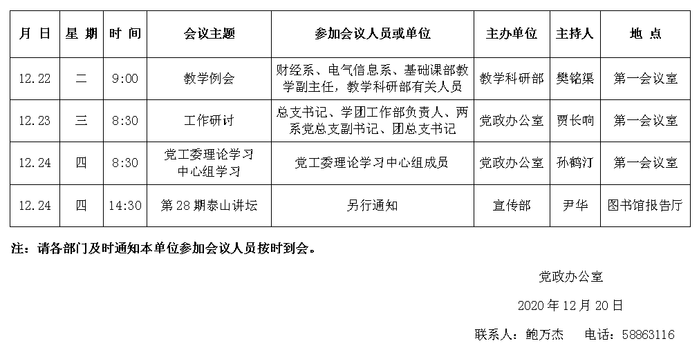 濟(jì)南校區(qū)第十七周會(huì)議安排