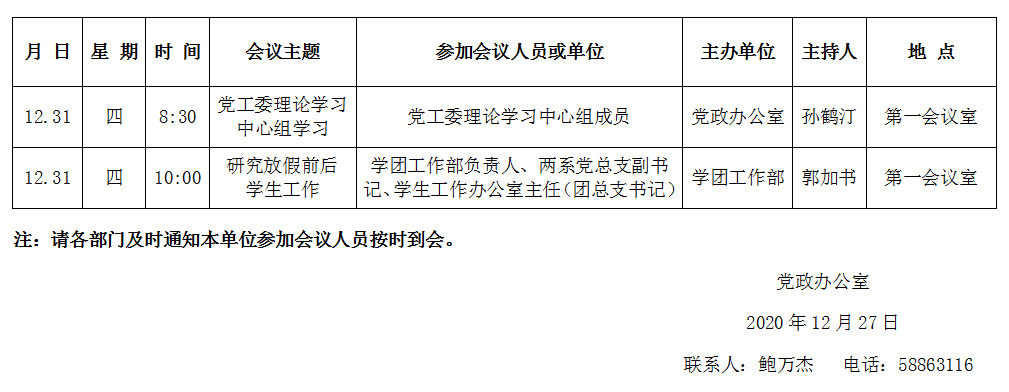 濟(jì)南校區(qū)第十八周會議安排