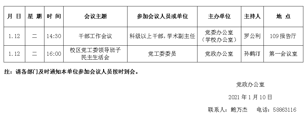 濟(jì)南校區(qū)第二十周會(huì)議安排