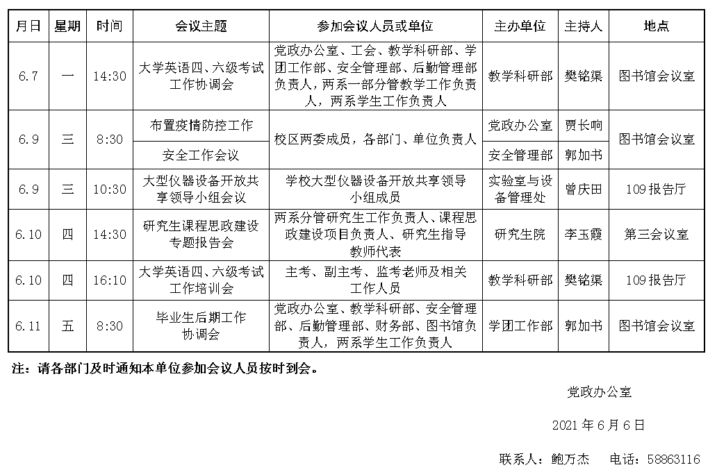 濟(jì)南校區(qū)第十五周會(huì)議安排