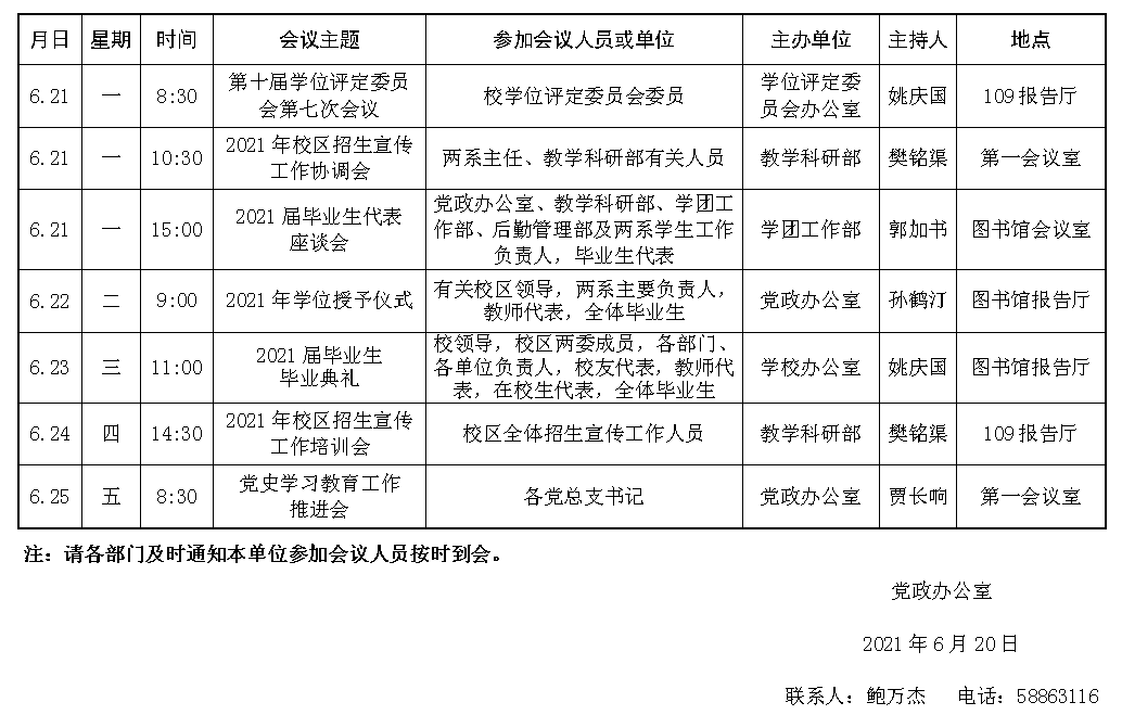 濟南校區(qū)第十七周會議安排