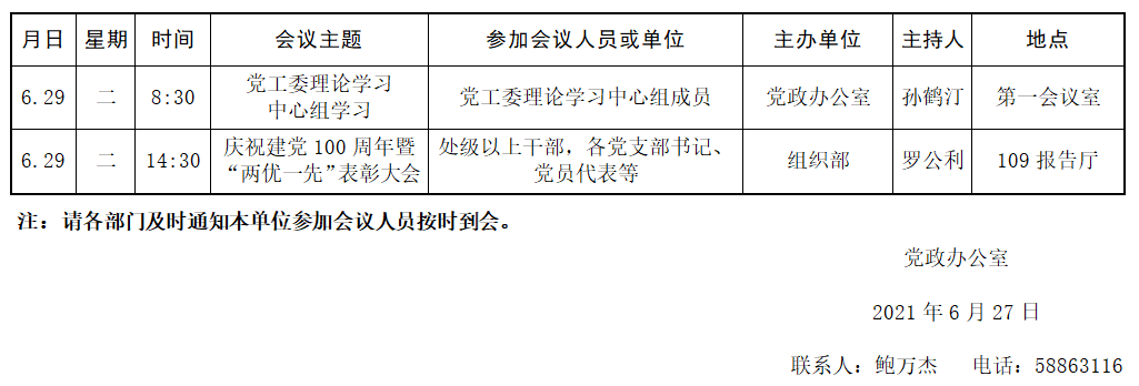 濟南校區(qū)第十八周會議安排