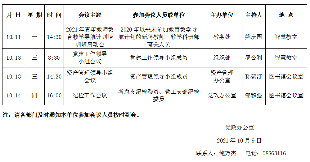 濟(jì)南校區(qū)第七周會(huì)議安排