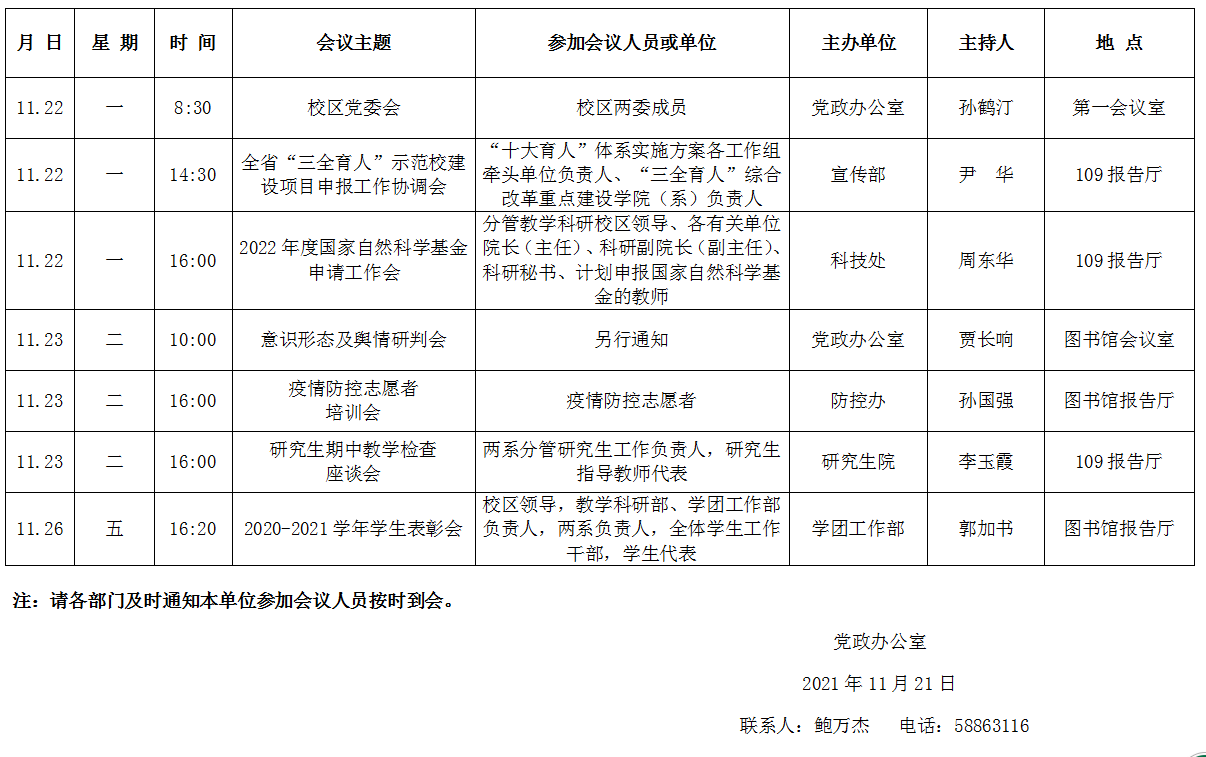 濟(jì)南校區(qū)第十三周會(huì)議安排