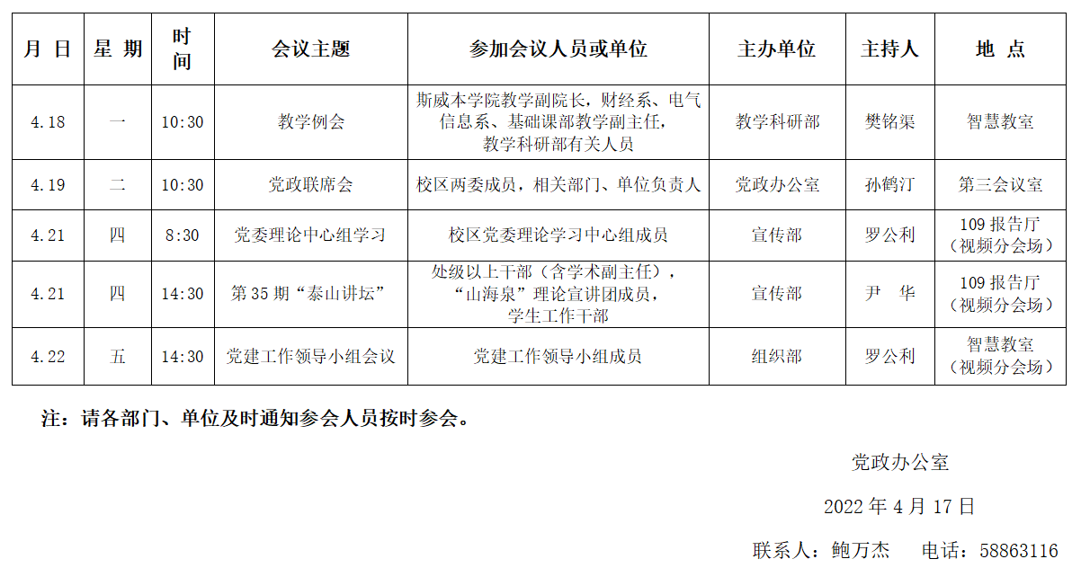 濟(jì)南校區(qū)第八周會(huì)議安排表