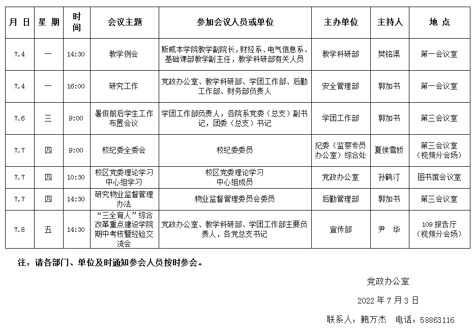 濟(jì)南校區(qū)第十九周會議安排