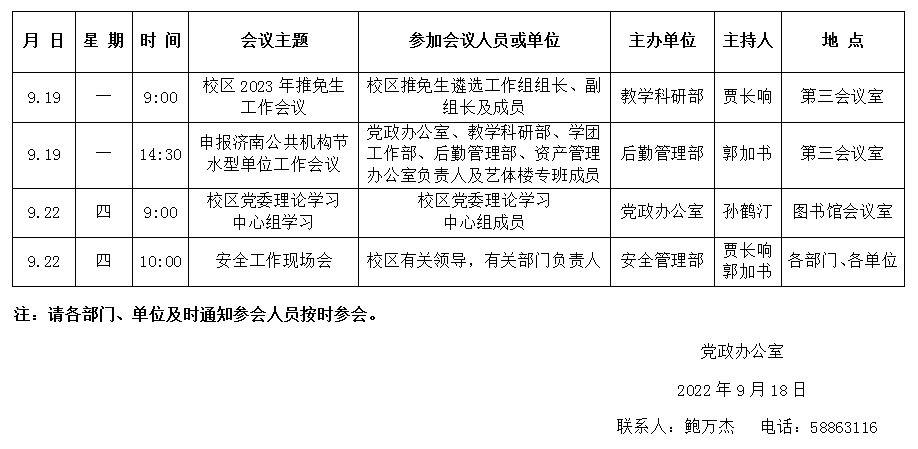 濟(jì)南校區(qū)第四周會(huì)議安排