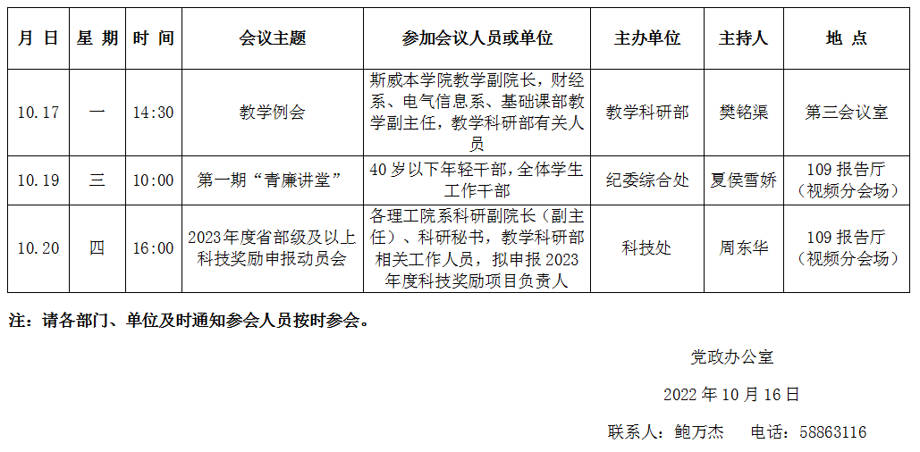 濟南校區(qū)第八周會議安排