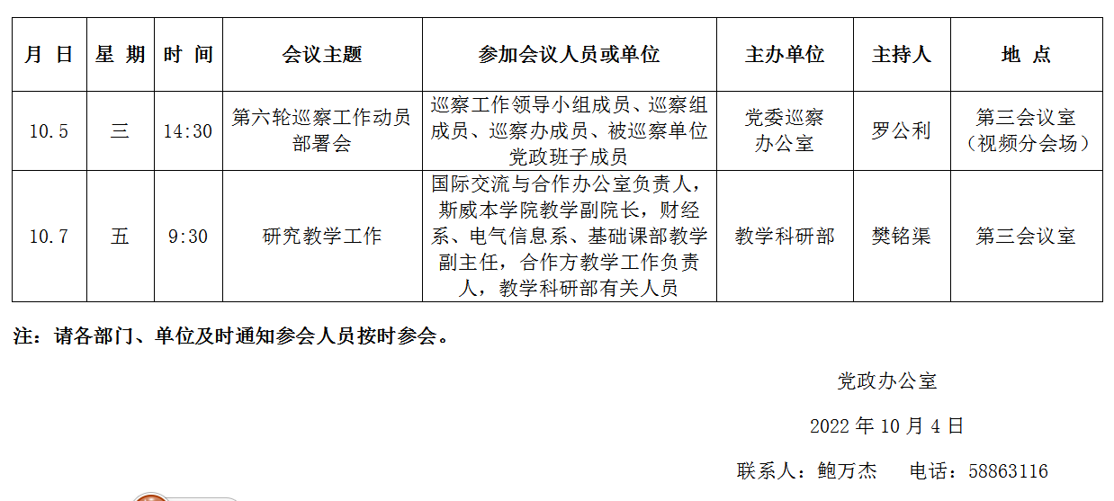 濟(jì)南校區(qū)第六周會(huì)議安排