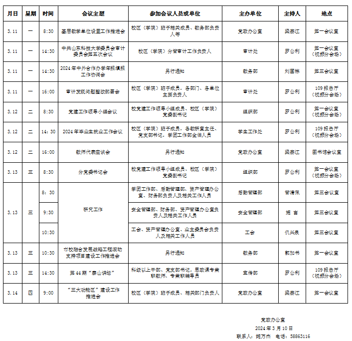 濟(jì)南校區(qū)(斯威本學(xué)院)第三周會(huì)議安排