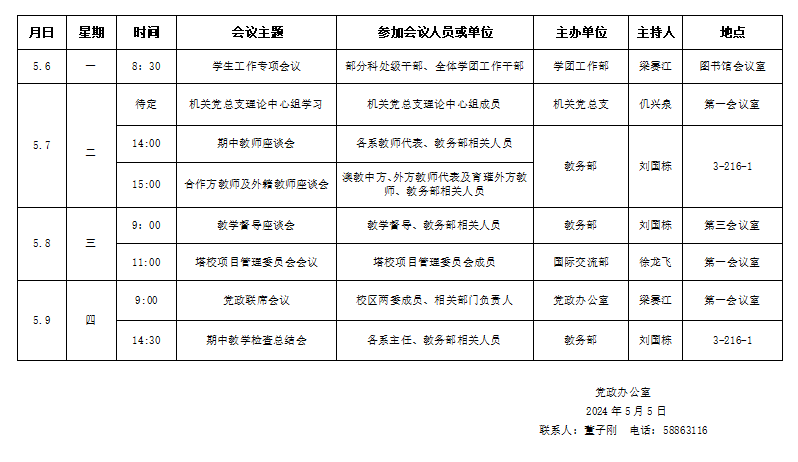濟南校區(qū)(斯威本學院)第十一周會議安排