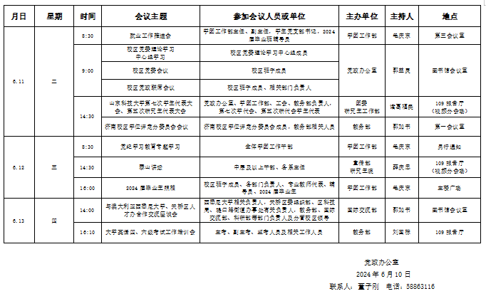 濟(jì)南校區(qū)(斯威本學(xué)院)第十六周會(huì)議安排