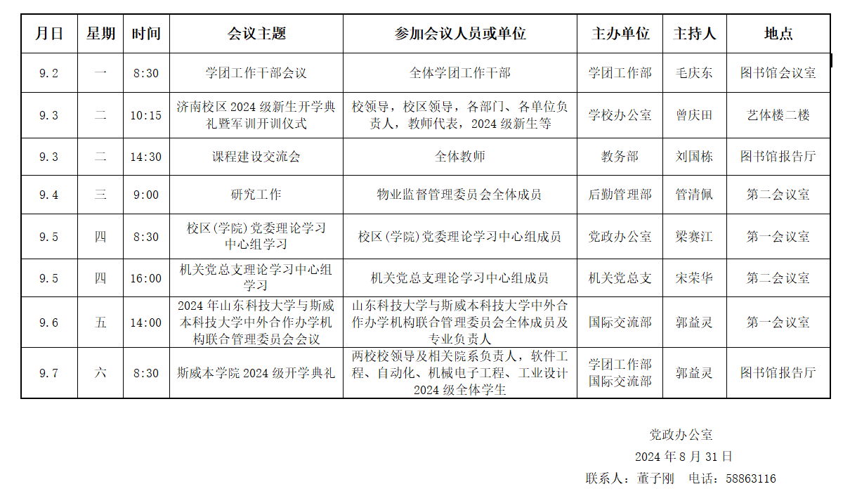 濟(jì)南校區(qū)(斯威本學(xué)院)第二周會(huì)議安排
