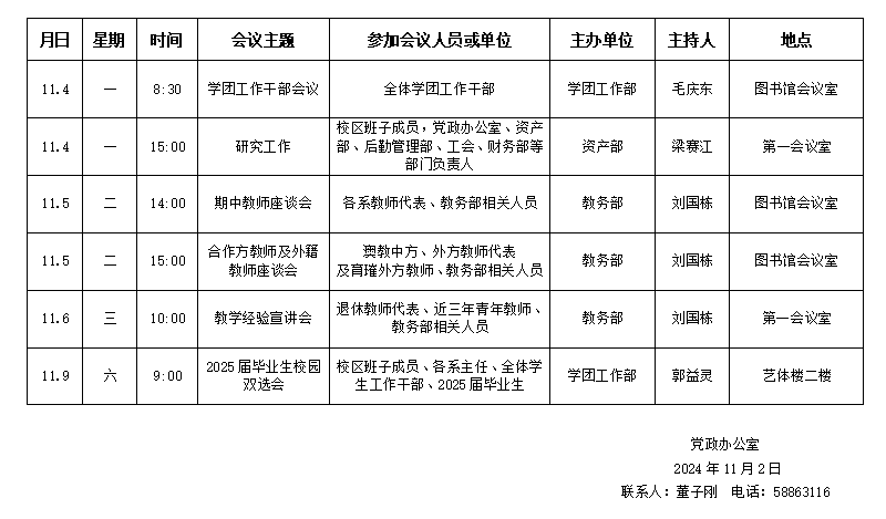 濟(jì)南校區(qū)(斯威本學(xué)院)第十一周會議安排