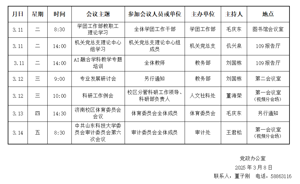 濟南校區(qū)(斯威本學院)第三周會議安排