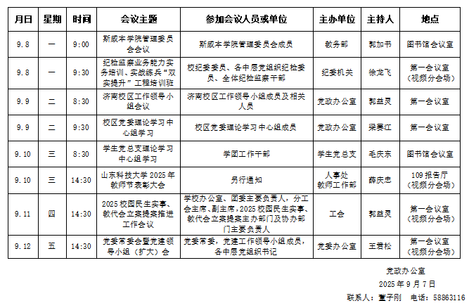濟(jì)南校區(qū)第二周會(huì)議安排