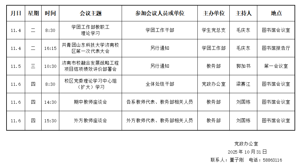 濟(jì)南校區(qū)第十周會(huì)議安排