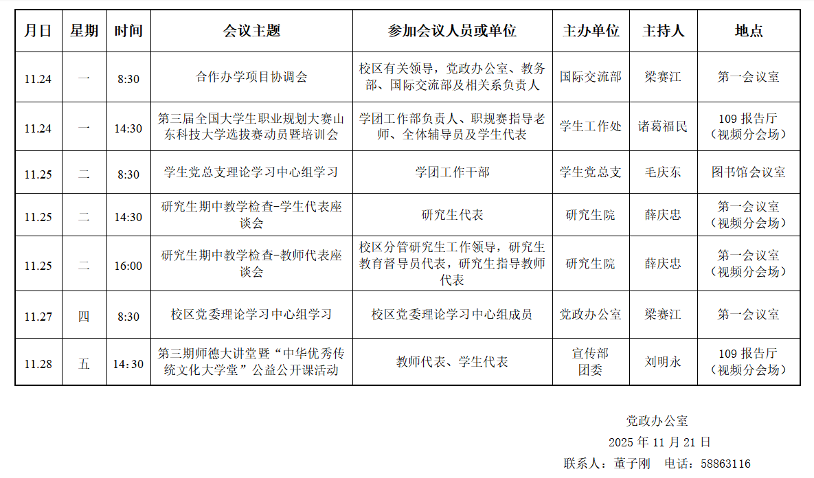 濟南校區(qū)第十四周會議安排