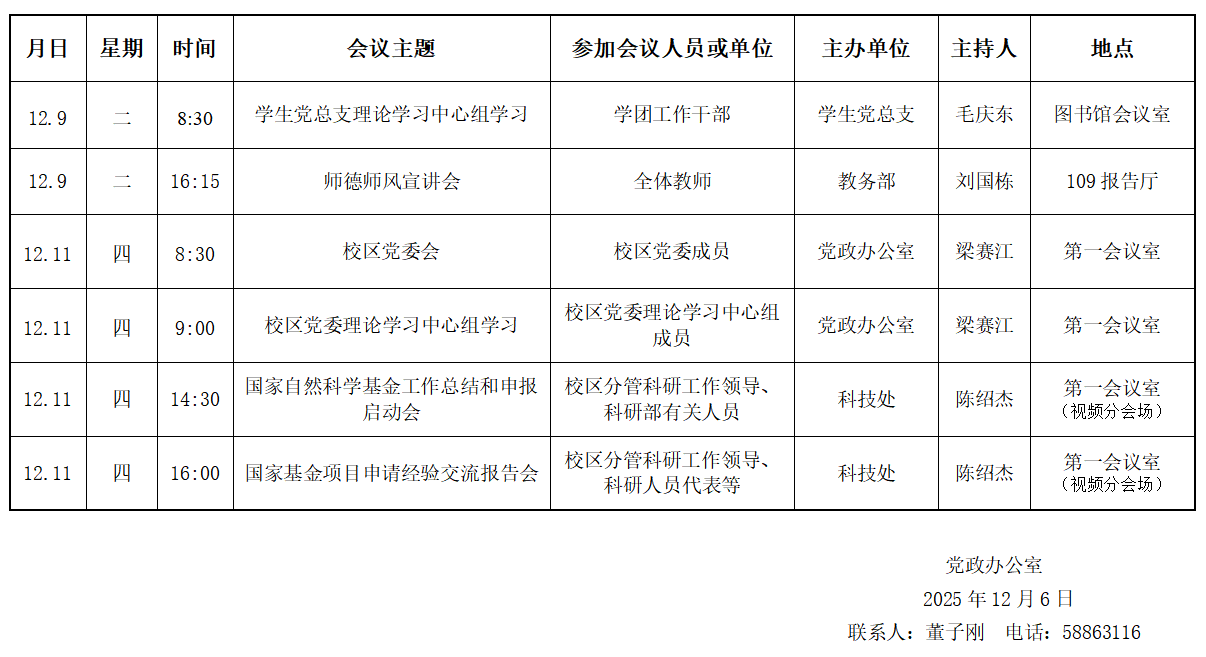 濟(jì)南校區(qū)第十五周會議安排