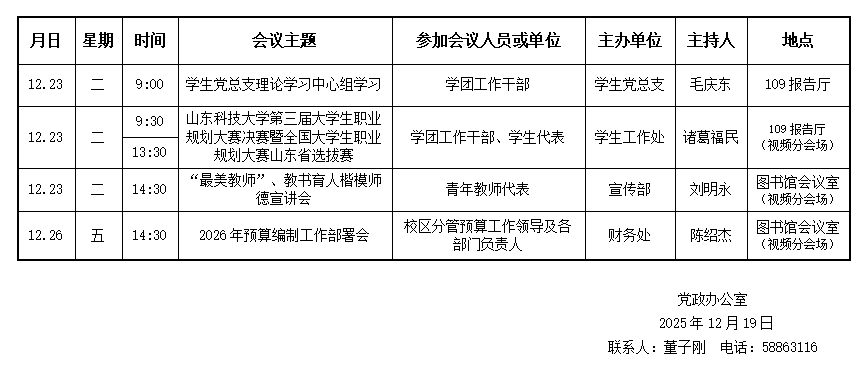 濟南校區(qū)第十六周會議安排