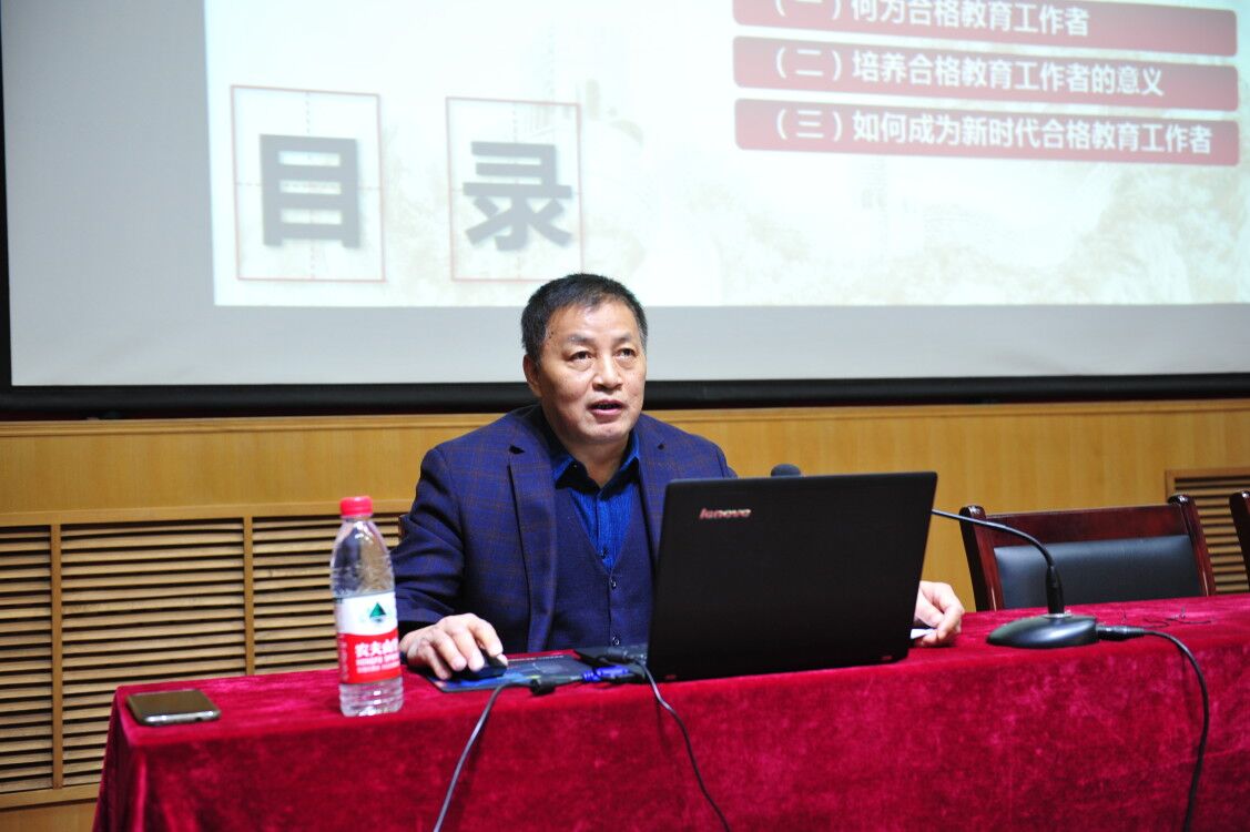 孫建峰以“堅定理想信念,做新時代合格教育工作者”為題為財經(jīng)系黨總支、機(jī)關(guān)黨總支全體黨員講黨課