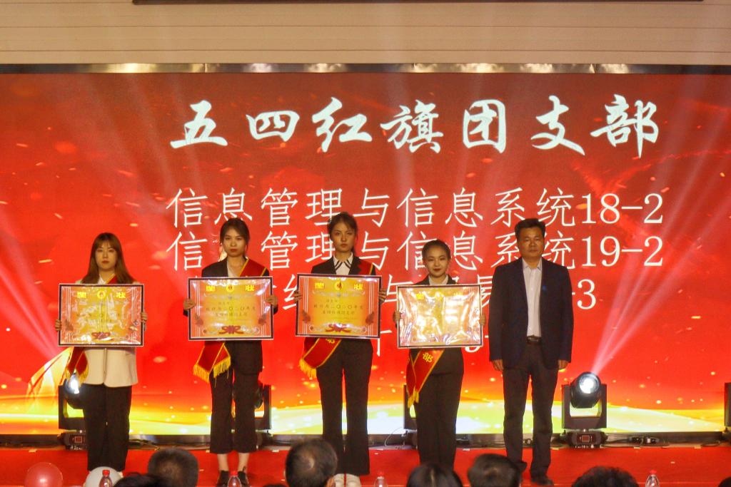 孫鶴汀等與會(huì)領(lǐng)導(dǎo)向獲獎(jiǎng)集體和先進(jìn)個(gè)人代表頒獎(jiǎng)。財(cái)經(jīng)系團(tuán)總支獲評(píng)2020年度山東科技大學(xué)“五四紅旗團(tuán)總支”,財(cái)經(jīng)系團(tuán)總支、電氣信息系團(tuán)總支分別獲評(píng)2020年度“特色工作紅旗團(tuán)總支”稱號(hào),齊斯文獲評(píng)山東科技大學(xué)第一屆“青年五四獎(jiǎng)?wù)隆保U萬(wàn)杰、張帥帥獲評(píng)濟(jì)南校區(qū)第一屆“青年五四獎(jiǎng)?wù)隆保畔⒐芾砼c信息系統(tǒng)2018-2等4個(gè)團(tuán)支部獲“五四紅旗團(tuán)支部”稱號(hào),葛小寧等23人獲“優(yōu)秀共青團(tuán)員標(biāo)兵”稱號(hào),譚雨麗等81人獲“優(yōu)秀共青團(tuán)干部”稱號(hào),陳碩等285人獲“優(yōu)秀共青團(tuán)員”稱號(hào),辛思潛等10人獲校區(qū)“2020年度十大校園之星”稱號(hào),黃子豪等9人獲“2020年度十大校園之星人氣提名獎(jiǎng)”稱號(hào)。